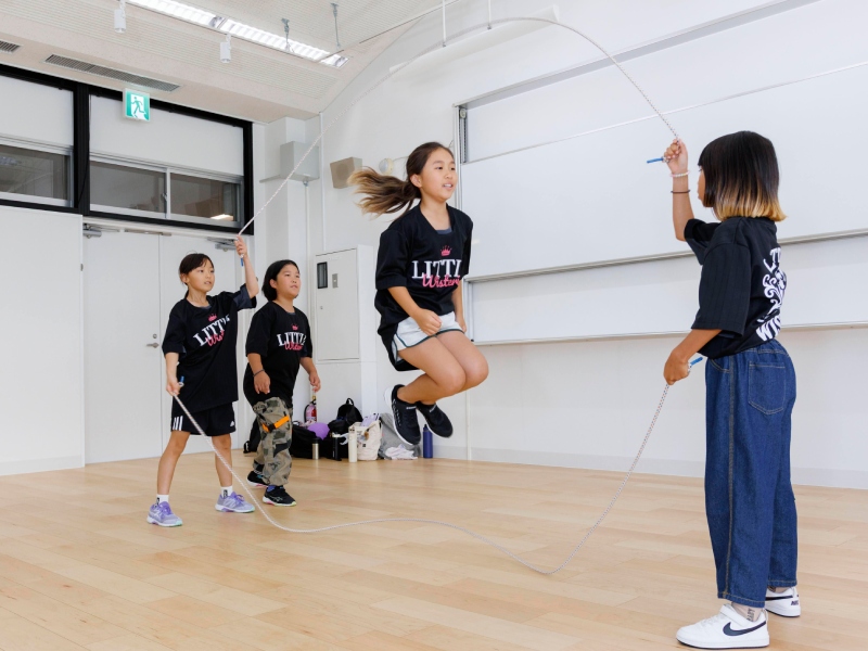 「スポーツはこわくない」をテーマに掲げるネイバーズスポーツクラブ。ダブルダッチでは、BGMと共に著名インストラクターやキッズ会員がパフォーマンスを披露します。飛び込みでのキッズダブルダッチ体験も!