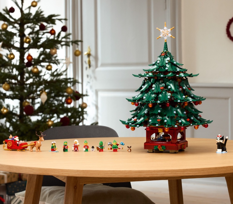 クリスマスツリー型のインテリアアイテムとして組み立てて楽しめる、全3,171ピースのレゴ®セット。サンタクロースのソリ、トナカイのどうぶつフィギュア、雪だるまとトナカイの“ぬいぐるみ”、組み立て式のニャンタクロース、ミセス・クロース、お手伝いのこびと5体に加え、たくさんのクリスマスアイテムが付属。