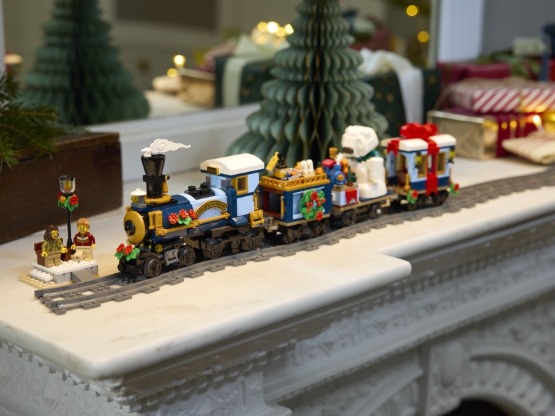 鉄道好きキッズに特におすすめの、クリスマスムードがふんだんに詰まった4車両の蒸気機関車は、全956ピースの大人向けレゴ®セット。16ピースの円形レールを走らせると、煙突が上下に揺れたり、シロクマがベルを鳴らしたりと、躍動感たっぷりの仕掛けも。