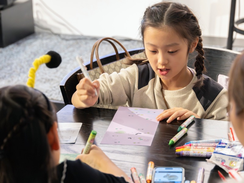 ワークショップに参加した子どもたちは、「ワンちゃんと金魚はうちのペット。カマキリは好きだから描いた」「外で遊んだ思い出を描いた」「頭に浮かんだものをそのまま絵に描いた」など、それぞれが自由な発想でデザインを楽しんだようだ。