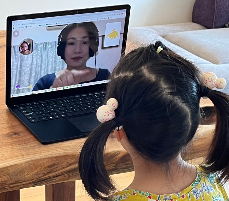 最初は自分で発言するのが怖く、お母様と一緒でないと参加できなかった子。ある日、カードを1人でスラスラ言い切れた瞬間から変化! 今では1人でレッスンを受け、英文も読めるように。「好きな歌」をきっかけに、長い文章への抵抗がなくなっていきました。